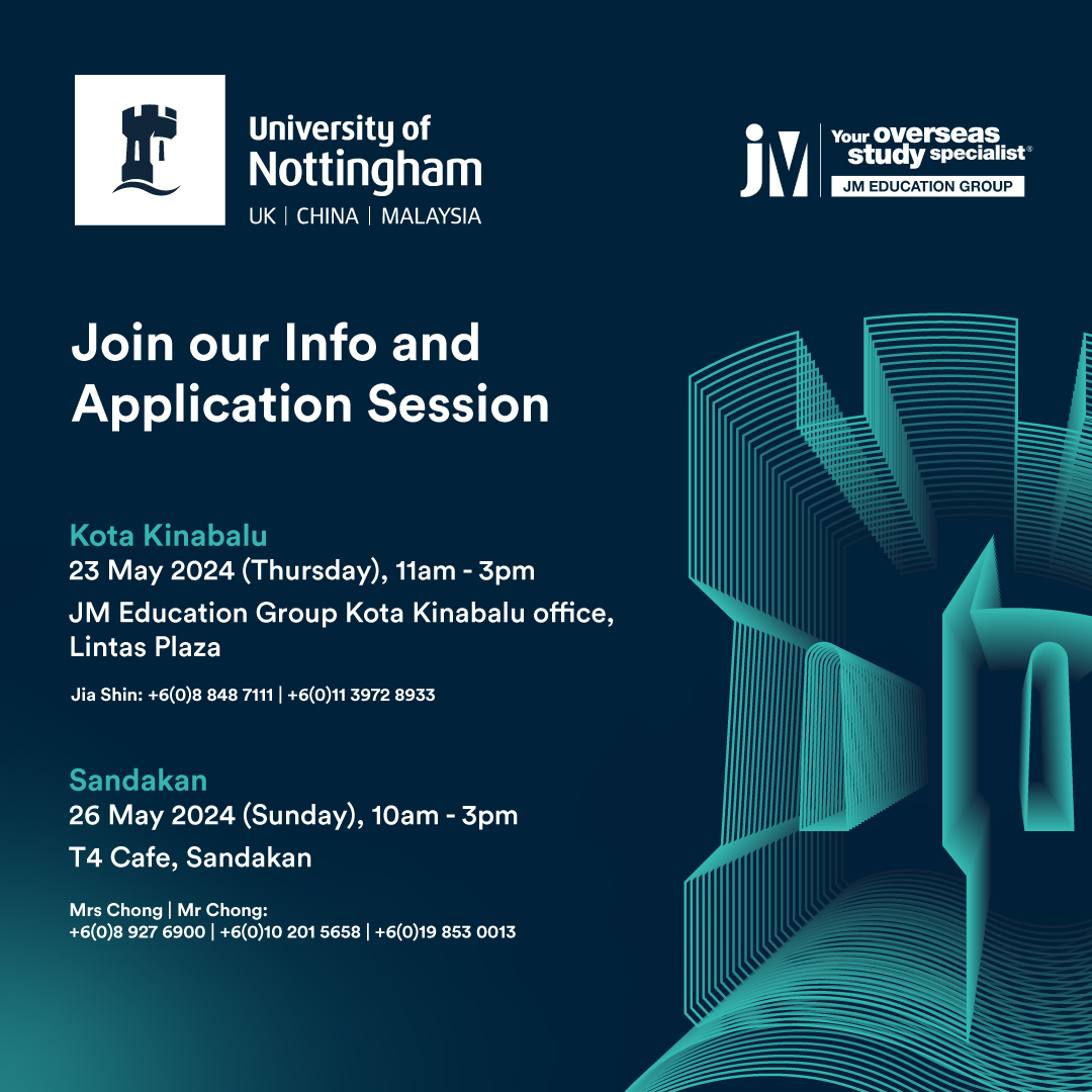 Look no further as the 🏛University of Nottingham Malaysia’s Info & Application Session is here! Grab this golden opportunity to learn all about the institution, including their:📚Courses💵Fees🏠Accommodation🎓Scholarships (T&C apply) & more!